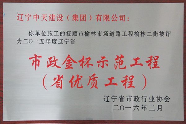 企業(yè)先后榮獲“全國優(yōu)秀施工企業(yè)”、 “中國AAA級信用企業(yè)”、“全國保障性安居工程建設勞動競賽先進單位”、“遼寧省最受尊敬企業(yè)”、“遼寧省優(yōu)秀建筑業(yè)企業(yè)”、“遼寧省工程建設質量管理優(yōu)秀企業(yè)”、 “遼寧省守合同、重信用企業(yè)”、遼寧省“AAA級信用企業(yè)”、 “撫順市安全生產(chǎn)先進單位、紅旗單位”、“撫順市安康杯競賽先進集體”等多項殊榮。
